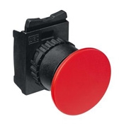 Large 42mm actuator, mounts in standard 22mm holeAvailable in momentary, twist-to-release, and key releaseRed engraved “EMERGENCY STOP"One N.C. contact block included |